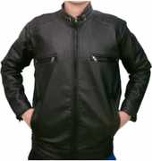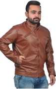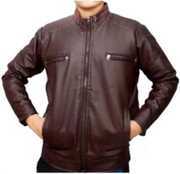 This stylish regular fit jacket in the display has full sleave and stand collar. Inside one pocket and branded zippers, this faux leather jacket is light in weight and will ensure cofort all time.