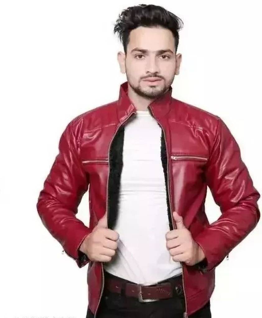 Men Solid Leather Jacket