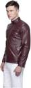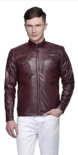 This stylish regular fit jacket in the display has full sleave and stand collar. Inside one pocket and branded zippers, this faux leather jacket is light in weight and will ensure cofort all time.