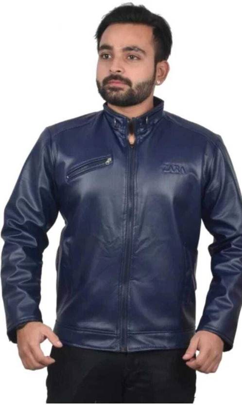 This stylish regular fit jacket in the display has full sleave and stand collar. Inside one pocket and branded zippers, this faux leather jacket is light in weight and will ensure cofort all time.