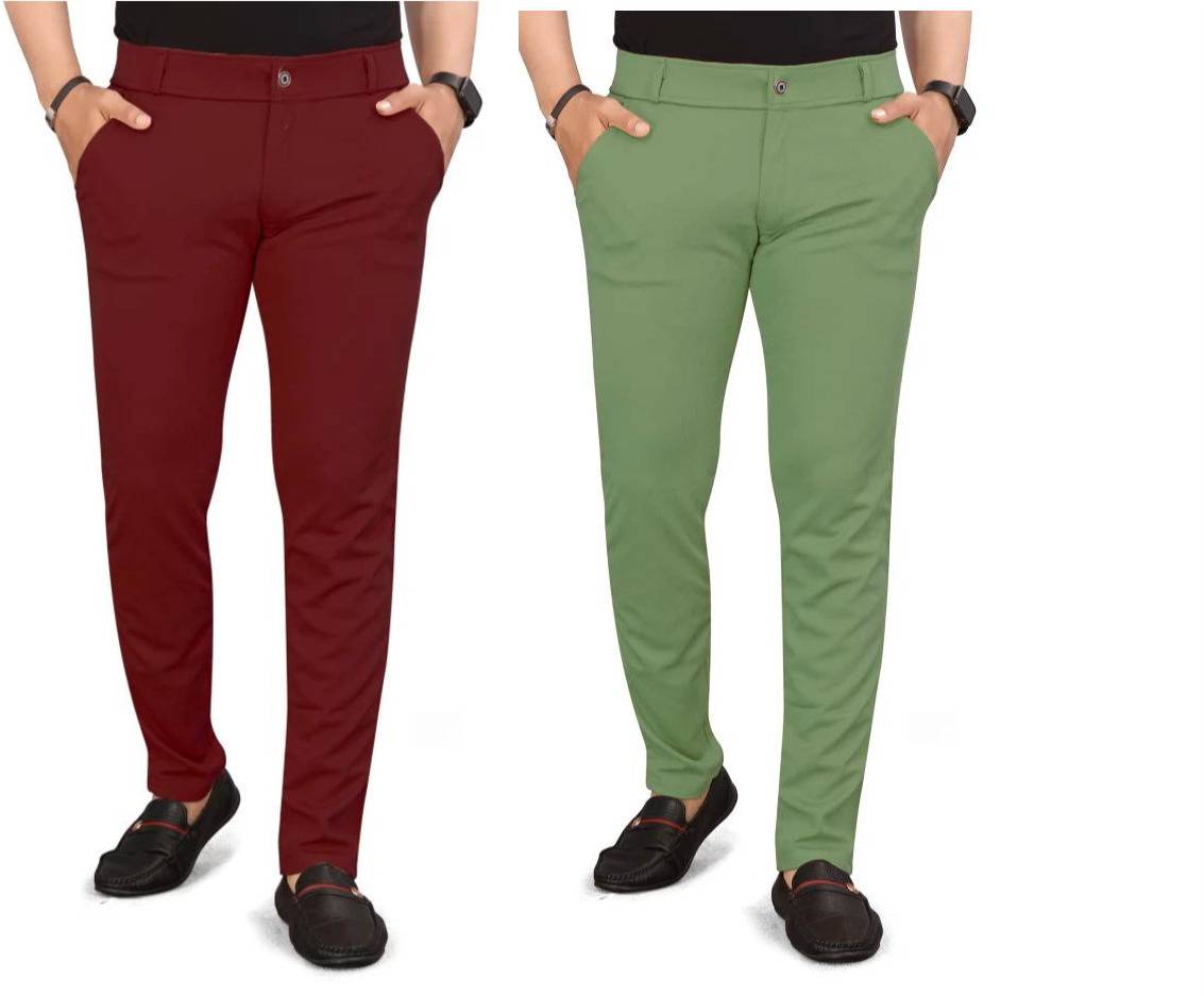 Pack of 2 Men Regular Fit Multicolor Lycra Blend Trousers