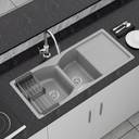 LAPO Quartz Kitchen Sink, Single Bowl Sink with -Grey Metallic Finish -37x18 Inches Quartz-Sink-Grey Double BWL-37x18 Top Mount (Grey)