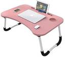 laptoptable Marsha Smart Multipurpose Foldable Laptop Table with Cup Holder Wood Portable Laptop Table (Finish Color - pink)