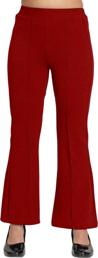 Lapza Women Regular Fit Red Cotton Blend Trousers
