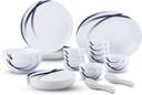 Larah by Borosil Pack of 33 Opalware Indigo Stella Dinner Set (White, Microwave Safe)