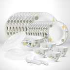Larah by Borosil Pack of 44 Opalware Pastel Galaxy Crockery Set for Dining & Gifting, Plate & Bowl Dinner Set (White, Microwave Safe)