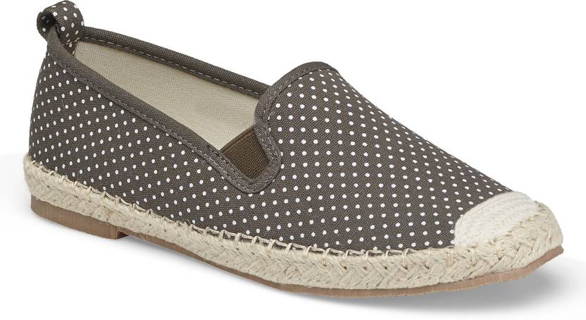 Add versatility to your outfit by slipping into this pair of trendy grey canvas polka printed espadrilles. Product Features- Closure Type: Slip-on; Toe Shape: Cap Toe; Heel Type: Flats.