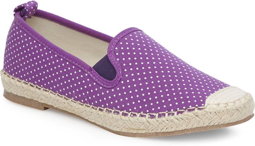 Sweep to the forefront of cutting-edge chic by slipping into this pair of purple canvas polka printed espadrilles. Product Features- Closure Type: Slip-on; Toe Shape: Cap Toe; Heel Type: Flats.