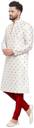 Look your ethnic best wearing this coloured Ganesh print Kurta Pyjama set for men from the fashion house of Larwa. Made from banarasi Jacquard, this regular-fit Ganesh print Kurta Pyjama set comprises a full-sleeved kurta and Pyjama to complete your look. Team this outfit with embroidered mojris and rock the party that you attend.