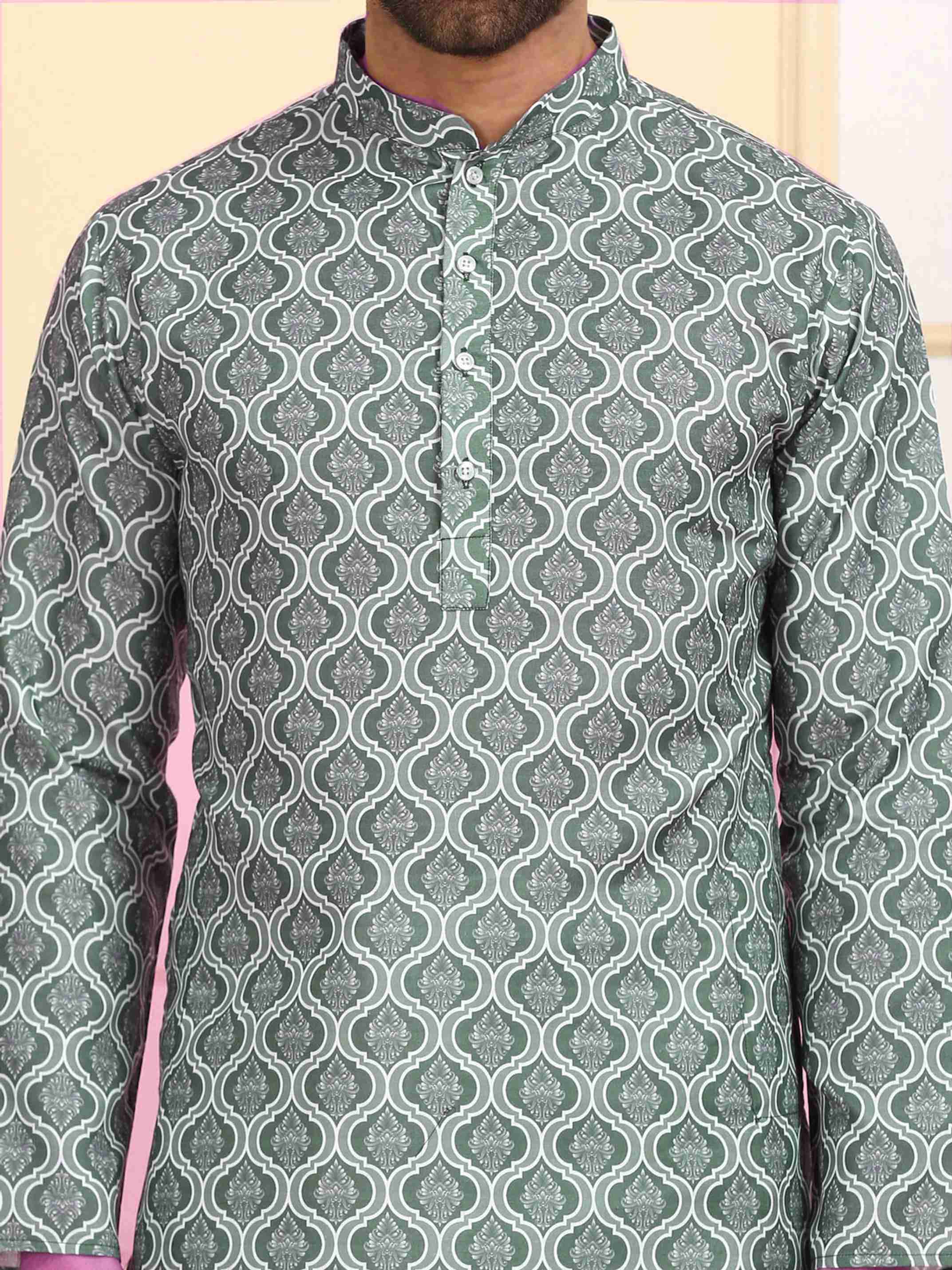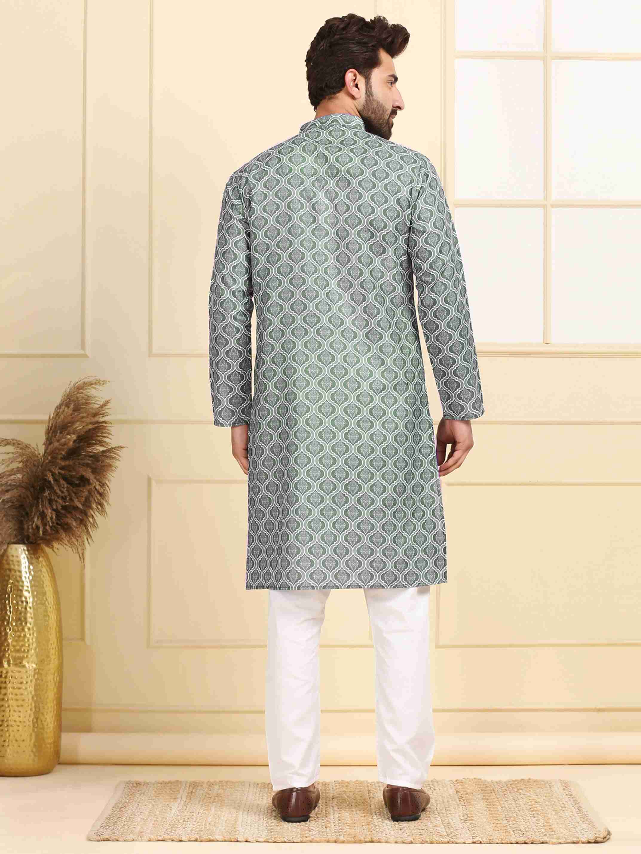 The cotton blend fabric used to craft the kurta and pyjama set is quite durable and comfortable. The softness and breathability of cotton will make it comfortab...Read More