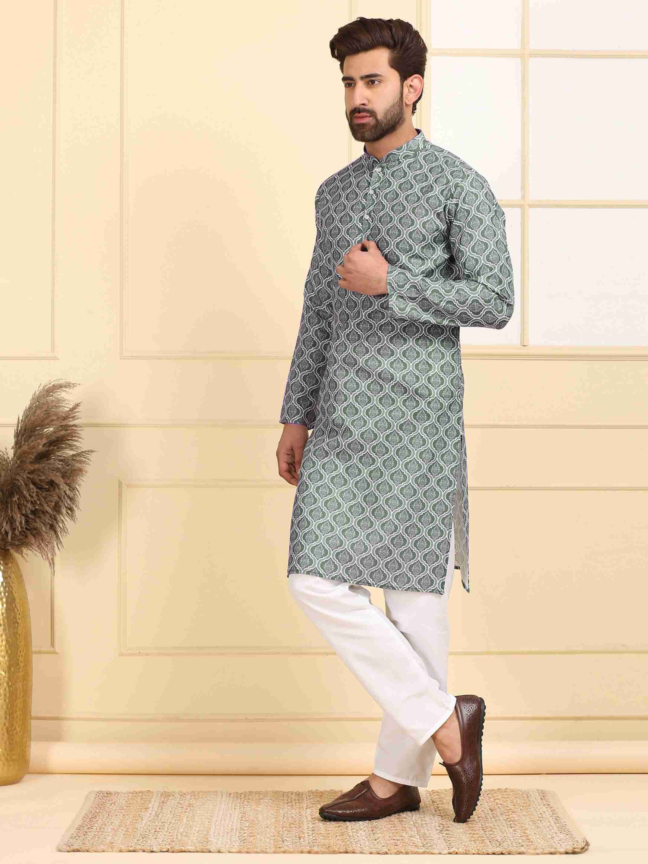 The intricate leafy pattern of the kurta gives it a sophisticated appeal. The leaves scattered across the kurta add to the look and make sure that you will grab...Read More