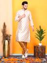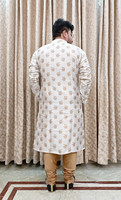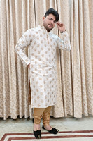 The collared neck of the kurta gives the kurta a sophisticated edge. It not only frames the face but gives it a distinctive touch. Additionally, the kurta has full sleeves which not only ensure comfort but also add to its versatility. You will be able to style the sleeves rolled or unrolled based on the occasion and create a look that makes you look refined.