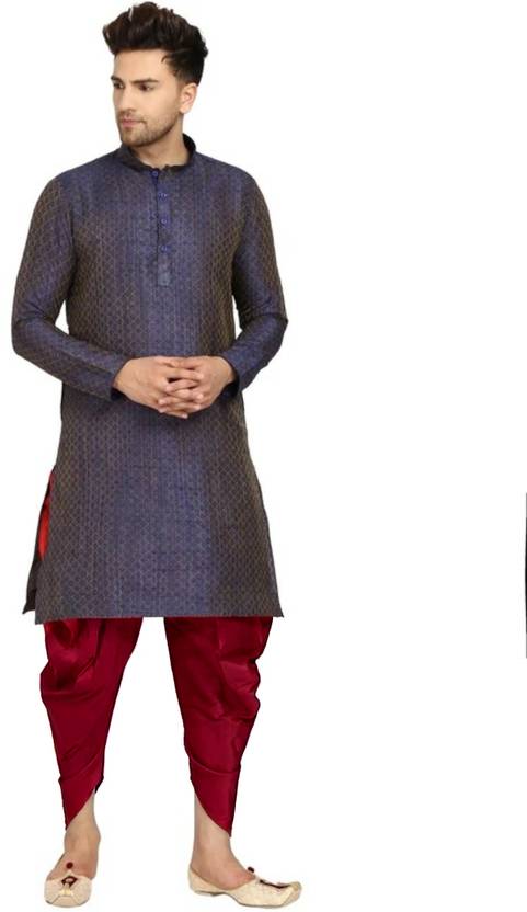 JACQRD KURTA&DHOTI NBLUE MAROON