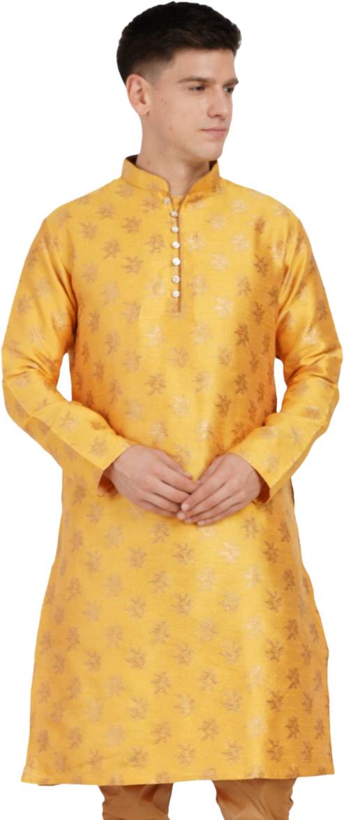 Men Self Design Jacquard Straight Kurta (Yellow)