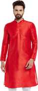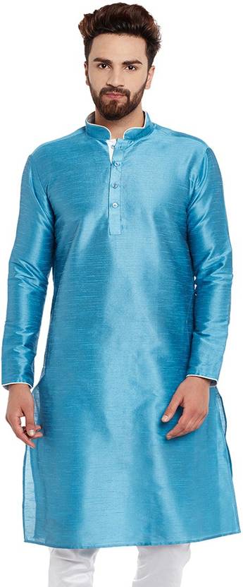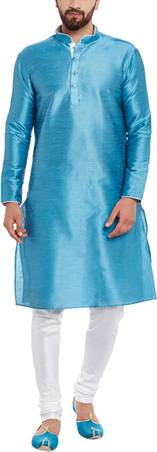 Look your ethnic best wearing this solid coloured kurta for men from the fashion house of Larwa. Made from banarasi dupion, this regular-fit kurta comprises a full-sleeved kurta to complete your look. Team this outfit with embroidered mojris and rock the party that you attend.