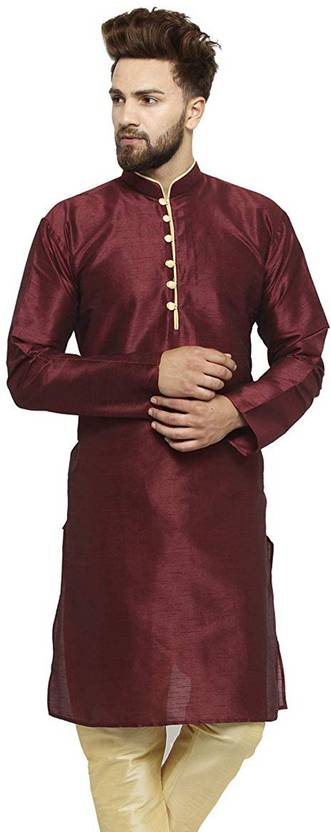 This product is made from Silk and finished in an attractive colors. It features long sleeve, banded collar, and is targeted towards men. Furthermore, it is recommended to be kept away from extreme heat, fire and corrosive liquids to avoid any form of damage.