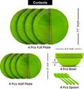 Laserbot Pack of 16 Melamin Melamin Banana Leaf Print(4 Full Plate|| 4 Bowl || 4 Half Plate || 4Spoon) 16pcs Dinner Set (Green)