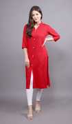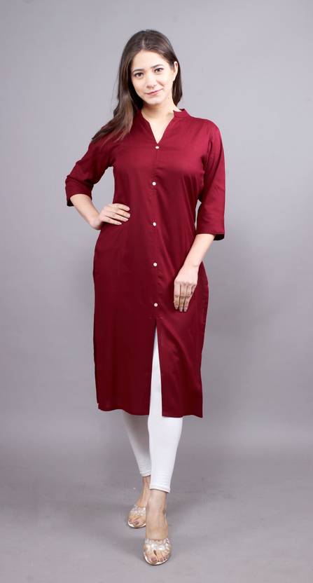 LASHKARINA Women Solid Frontslit Kurta (Maroon)