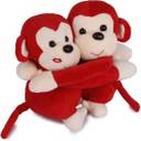 Lata Cute Red Monkey Couple stuffed soft toy for kids Baby Boy/Girl - 30 cm (Multicolor)