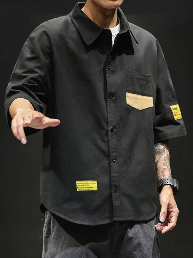 Featuring an applique pattern, this men’s oversized shirt provides a timeless look that effortlessly blends with any wardrobe. Its sleek design allows for easy coordination with both casual and more formal outfits, making it a practical choice for a range of occasions.