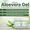 Key Features | - FOR FACE & HAIR: Our pure Aloe Vera Gel helps fight acne, pimples, and wrinkles while gently hydrating dry skin. It balances oily skin by controlling excess oil production. Perfect for soothing sunburns, redness, and skin irritations, it also promotes hair growth and works as a natural conditioner., MULTIPURPOSE GEL: This versatile gel acts as a: ✔ Moisturizer for soft, supple skin ✔ Hydrating & Soothing Gel for irritation relief ✔ After-Shave Gel to calm razor burns ✔ Brightening Face Mask for a radiant glow ✔ Cooling Eye Gel to reduce dark circles & wrinkles, 100% Pure Aloe Vera – Extracted from fresh aloe leaves for maximum skin and hair benefits., Deep Hydration – Provides intense moisture for dry, rough, or tired skin., Soothes & Calms – Helps reduce redness, irritation, and sunburn effects., Multipurpose Use – Ideal for face, hair, body, after-sun care, and post-shave relief., Hair Nourishment – Conditions scalp, reduces frizz, and adds natural shine.