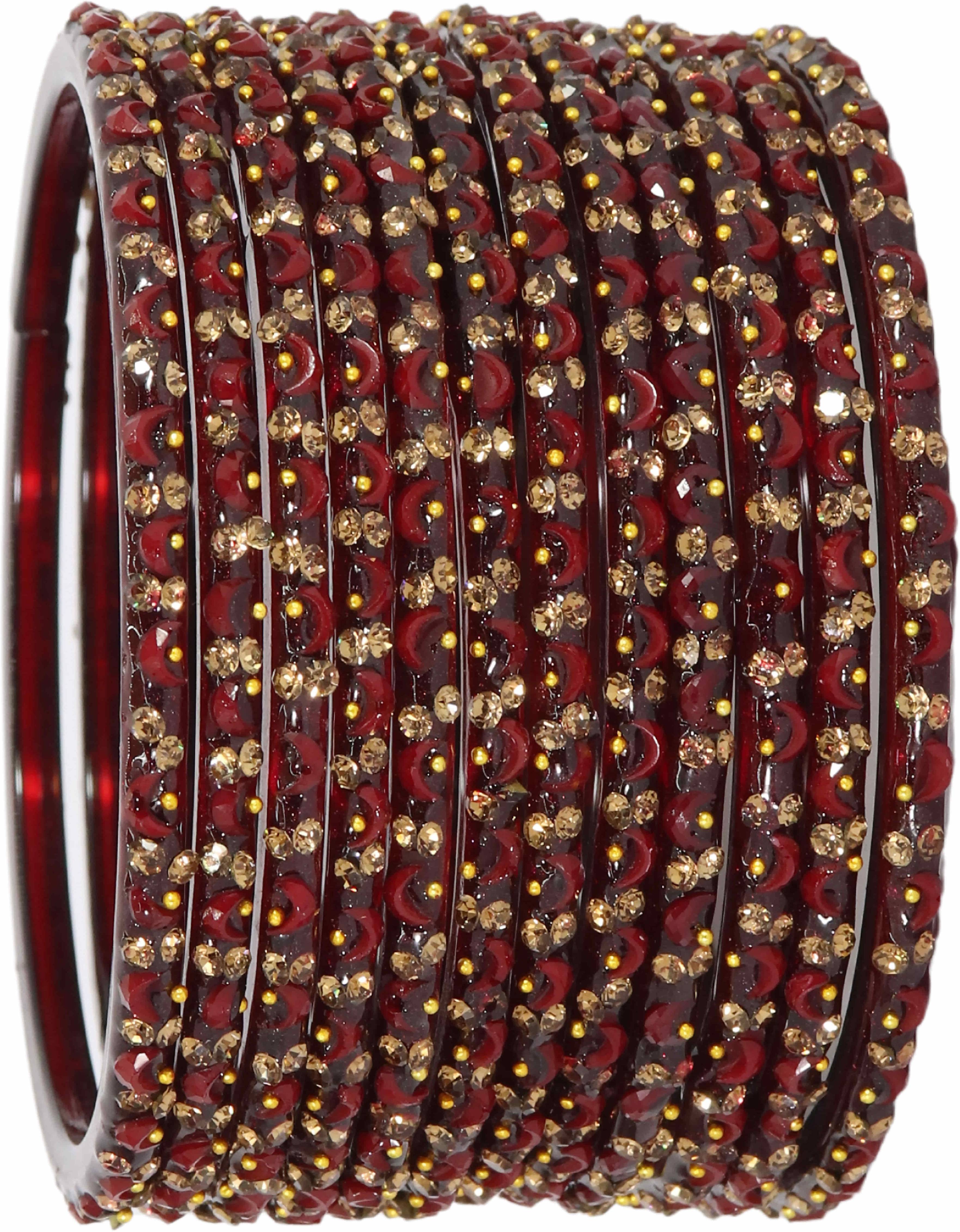 LAVAZZA's New Collection of Glass Bangles Set with Zircon Gemstone and Beads for women and girls, is a stunning piece that combines modern new style with timeless beauty, encapsulating the essence of a Wedding, Party, Event, Special Occasion, Karvachauth and Daily wear also. These Bangles are made from high-quality Glass material, Golden Zircon Stone & Beads. It is durable and features a vibrant color symbolizing love, passion, and new beginnings. The intricate design showcases LAVAZZA's skillful craftsmanship, ensuring you shine on your special day. The set also doubles as a versatile piece of bridal jewelry, complementing a wide range of outfits, including classic sarees and modern lehengas. LAVAZZA prides itself on offering the finest quality, timeless style, and unwavering commitment to tradition. The set is designed to make your special day extra special, ensuring you look and feel your best. Elevate your bridal ensemble with LAVAZZA Glass Chudi Set and make memories that will last a lifetime. These LAVAZZA's Designer Glass Bangles Set Have a Premium Finish and are Perfect for Weddings, Engagements, Functions, Festival, Rituals and Events. The Brand LAVAZZA sells all types of Glass Bangles, Metal Bangles, Acrylic Bangles, Chuda Sets, Kaleera Latkan Sets, Kadas, Bracelets, Women and Girls Traditional to Modern Jewellery, and many More. And Please Refer to our Size Chart to Know your Hand Size Precisely. To maintain longevity, clean bangles with a smooth cotton cloth, avoid direct water, perfume, deodorant, sunlight, and chemicals, and store them in an airtight zip-lock pouch. Thank You For Choosing LAVAZZA's Fancy Glass Bangles Collection.