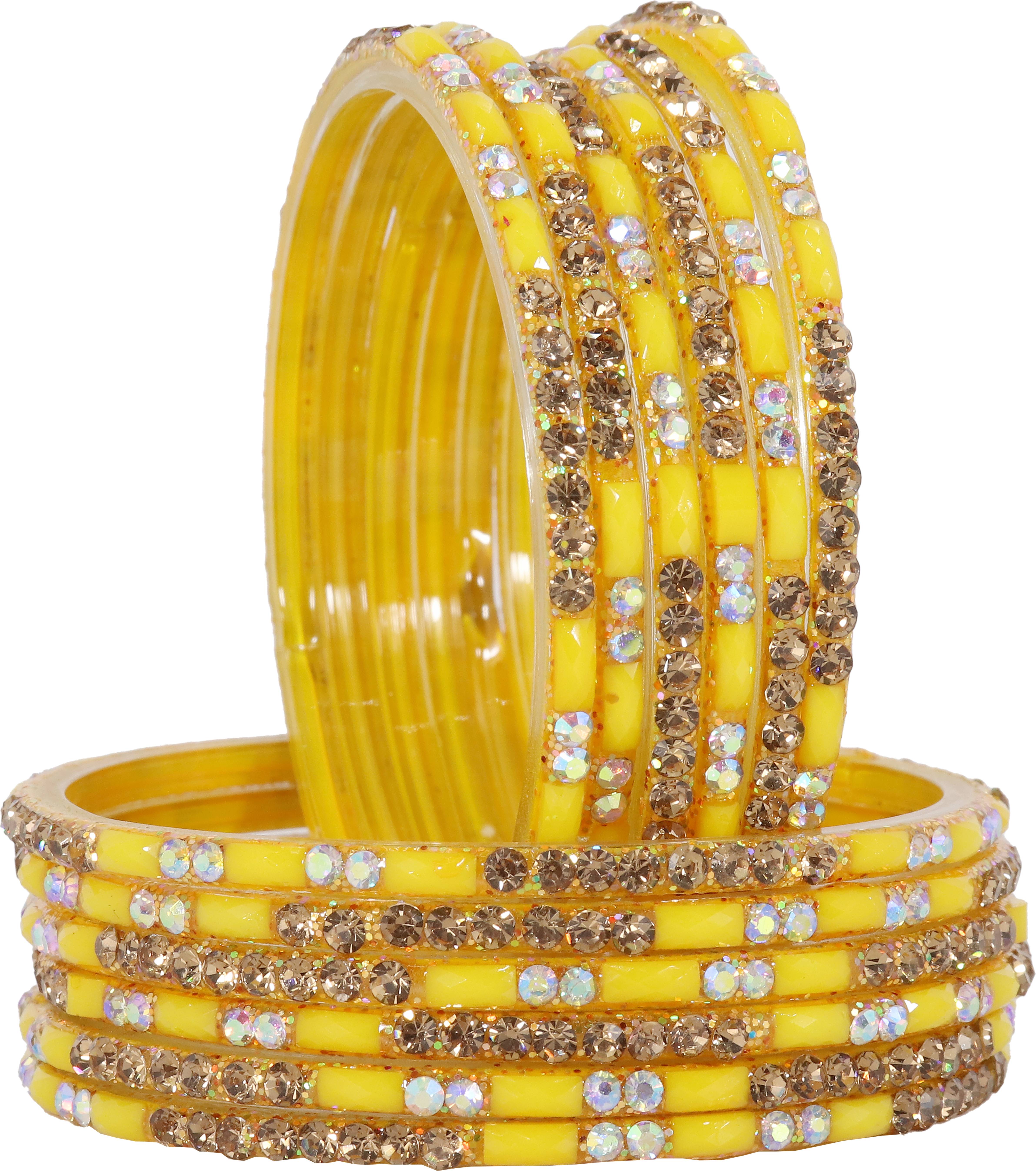 Lavazza's Glass Bangles Set with Golden Diamond Stones and Beads Studded, is a stunning piece that combines modern style with timeless beauty, encapsulating the essence of a traditional Indian wedding. Crafted from high-quality Glass material, Beads, and Zircon Gemstone. It is durable and features a vibrant color symbolizing love, passion, and new beginnings. The intricate design showcases Lavazza's skillful craftsmanship, ensuring you shine on your special day. The set also doubles as a versatile piece of bridal jewelry, complementing a wide range of outfits, including classic sarees and modern lehengas. Lavazza prides itself on offering the finest quality, timeless style, and unwavering commitment to tradition. The set is designed to make your wedding day extra special, ensuring you look and feel your best. Elevate your bridal ensemble with Lavazza's Glass Chudi Set and make memories that will last a lifetime. These Lavazza's Designer Glass Bangles Set Have a Premium Finish and are Perfect for Weddings, Engagements, Functions, Festival, Rituals and Events. The Brand Lavazza sells all types of Glass Bangles, Metal Bangles, Acrylic Bangles, Chuda Sets, Kaleera Latkan Sets, Kadas, Bracelets, Women and Girls Traditional to Modern Jewellery, and many More. And Please Refer to our Size Chart to Know your Hand Size Precisely. To maintain longevity, clean bangles with a smooth cotton cloth, avoid direct water, perfume, deodorant, sunlight, and chemicals, and store them in an airtight zip-lock pouch. Thank You For Choosing Lavazza's Premium Collection.