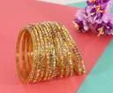 Lavazza's Glass Bangles Set with Golden Diamond Stones and Beads Studded, is a stunning piece that combines modern style with timeless beauty, encapsulating the essence of a traditional Indian wedding. Crafted from high-quality Glass material, Beads, and Zircon Gemstone. It is durable and features a vibrant color symbolizing love, passion, and new beginnings. The intricate design showcases Lavazza's skillful craftsmanship, ensuring you shine on your special day. The set also doubles as a versatile piece of bridal jewelry, complementing a wide range of outfits, including classic sarees and modern lehengas. Lavazza prides itself on offering the finest quality, timeless style, and unwavering commitment to tradition. The set is designed to make your wedding day extra special, ensuring you look and feel your best. Elevate your bridal ensemble with Lavazza's Glass Chudi Set and make memories that will last a lifetime. These Lavazza's Designer Glass Bangles Set Have a Premium Finish and are Perfect for Weddings, Engagements, Functions, Festival, Rituals and Events. The Brand Lavazza sells all types of Glass Bangles, Metal Bangles, Acrylic Bangles, Chuda Sets, Kaleera Latkan Sets, Kadas, Bracelets, Women and Girls Traditional to Modern Jewellery, and many More. And Please Refer to our Size Chart to Know your Hand Size Precisely. To maintain longevity, clean bangles with a smooth cotton cloth, avoid direct water, perfume, deodorant, sunlight, and chemicals, and store them in an airtight zip-lock pouch. Thank You For Choosing Lavazza's Premium Collection.