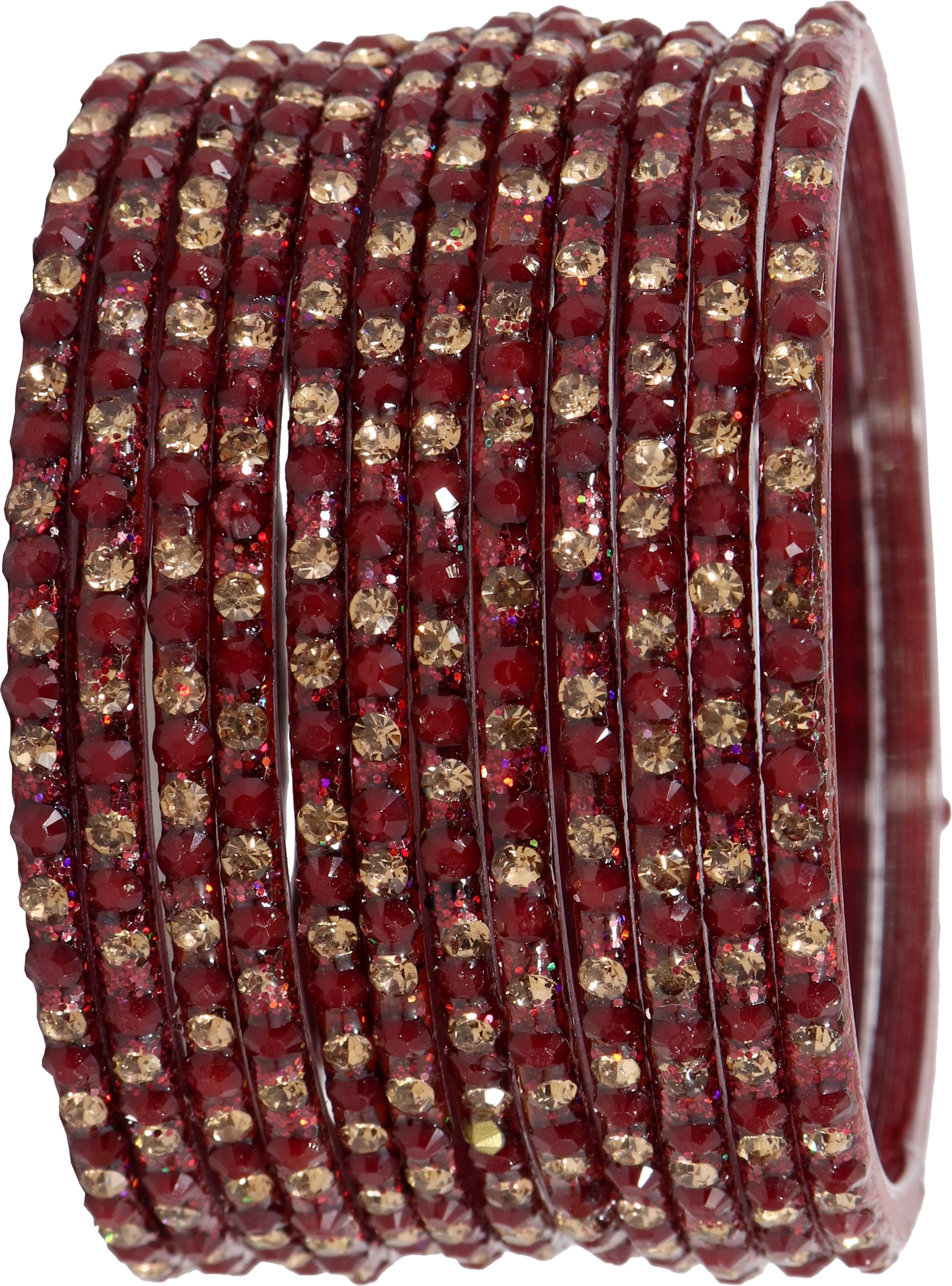 Lavazza's Glass Bangle Set is a stunning piece that combines modern style with timeless beauty, encapsulating the essence of a traditional Indian wedding. Crafted from high-quality Glass material, AD Stone, Beads, and Zircon Gemstone. It is durable and features a vibrant color symbolizing love, passion, and new beginnings. The intricate design showcases Lavazza's skillful craftsmanship, ensuring you shine on your special day. The set also doubles as a versatile piece of bridal jewelry, complementing a wide range of outfits, including classic sarees and modern lehengas. Lavazza prides itself on offering the finest quality, timeless style, and unwavering commitment to tradition. The set is designed to make your wedding day extra special, ensuring you look and feel your best. Elevate your bridal ensemble with Lavazza's Glass Chudi Set and make memories that will last a lifetime. These Lavazza's Designer Glass Bangles Set Have a Premium Finish and are Perfect for Weddings, Engagements, Functions, Festival, Rituals and Events. The Brand Lavazza sells all types of Glass Bangles, Metal Bangles, Acrylic Bangles, Chuda Sets, Kaleera Latkan Sets, Kadas, Bracelets, Women and Girls Traditional to Modern Jewellery, and many More. And Please Refer to our Size Chart to Know your Hand Size Precisely. To maintain longevity, clean bangles with a smooth cotton cloth, avoid direct water, perfume, deodorant, sunlight, and chemicals, and store them in an airtight zip-lock pouch. Thank You For Choosing Lavazza's Premium Collection.