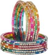 LAVAZZA's Beautiful Collection of Transparent Glass Bangles Set for Women and Girls Adorned with Zircon Diamond Stones and Beads. This Beautiful Bangle Piece combines both Modern New Style and Traditional Feel, and make a essence in a Wedding, Party, Special Occasion, Karvachauth and Daily wear also. These Bangles are made from High-quality Clear Transparent Glass material, Zircon Diamond Stone, & Beads. These are durable and features a vibrant color symbolizing love, passion, and new beginnings. The intricate design showcases LAVAZZA's skillful craftsmanship, ensuring you shine on your special day. The set also doubles as a versatile piece of bridal jewelry, complementing a wide range of outfits, including classic sarees and modern lehengas. LAVAZZA prides itself on offering the finest quality, timeless style, and unwavering commitment to tradition. The set is designed to make your special day extra special, ensuring you look and feel your best. Elevate your bridal ensemble with LAVAZZA Glass Chudi Set and make memories that will last a lifetime. These LAVAZZA's Designer Glass Bangles Set Have a Premium Finish and are Perfect for Weddings, Engagements, Special Functions, Festivals, Rituals, Bridal Shower, Anniversary, Events and Daily wear also. The Brand LAVAZZA sells all types of Glass Bangles, Metal Bangles, Acrylic Bangles, Chuda Sets, Kaleera Latkan Sets, Kadas, Bracelets, Women and Girls Traditional to Modern Jewellery, and many More. And Please Refer to our Size Chart to Know your Hand Size Precisely. To maintain longevity, clean bangles with a smooth cotton cloth, avoid direct water, perfume, deodorant, sunlight, and chemicals, and store them in an airtight zip-lock pouch. Thank You For Choosing LAVAZZA's Latest Trendy Glass Bangles Collection on .