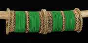 LAVAZZA's Traditional Gold Plated AD Diamond Chuda Bangles Set For women & Girls. Its is a Beautiful premium piece that combines old antique style with timeless beauty, encapsulating the essence of a traditional wedding or any occasion. Crafted from high-quality Metal material, AD Stone, Zircon Gemstone & Kundan Material. It is durable and vibrant colours symbolizes love, passion, and new beginnings. The intricate design showcases Lavazza's skillful craftsmanship, ensuring you shine on your special day. The set also doubles as a versatile piece of bridal jewelry, complementing a wide range of outfits, including classic red sarees and modern lehengas. Lavazza prides itself on offering the finest quality, timeless style, and unwavering commitment to tradition. The set is designed to make your wedding day extra special, ensuring you look and feel your best. Elevate your bridal ensemble with Lavazza's Bangles Chuda Set and make memories that will last a lifetime. These Lavazza's Designer Bridal Chuda Set Have a Premium Finish and are Perfect for Weddings, Engagements, Functions, Festival, Rituals, and Events. The Brand Lavazza sells all types of Glass Bangles, Metal Bangles, Acrylic Bangles, Chuda Sets, Kaleera Latkan Sets, Kadas, Bracelets, Women's and Girls Traditional to Modern Jewellery, and many More. And Please Refer to our Size Chart to Know your Hand Size Precisely. Clean bangles with a smooth cotton cloth, avoid direct water, perfume, deodorant, sunlight, and chemicals, and store in an airtight zip-lock pouch to maintain longevity. Thank You For Choosing Lavazza's Premium Collection.