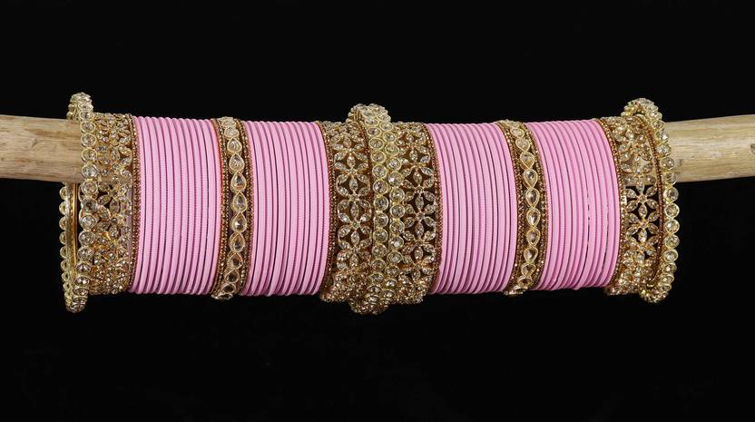 LAVAZZA Premium Gold Plated Metal Bangles Chuda Set For Bridal Women & Girls with AD Diamond & Kundan| Stylish Chuda Set | chudiya for women latest | Diamond Chuda Pink-(Chuda10-Pink-2.8)