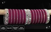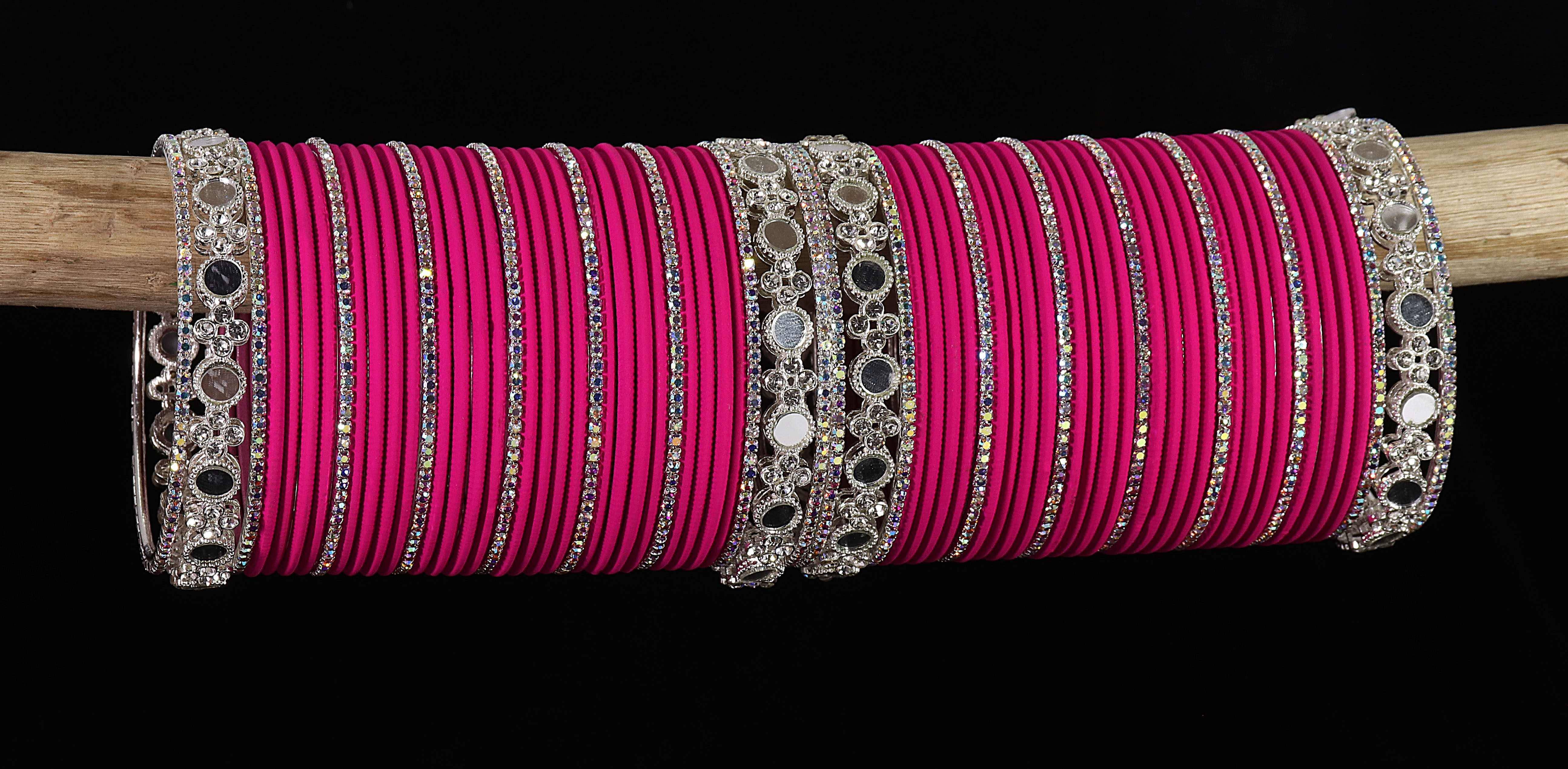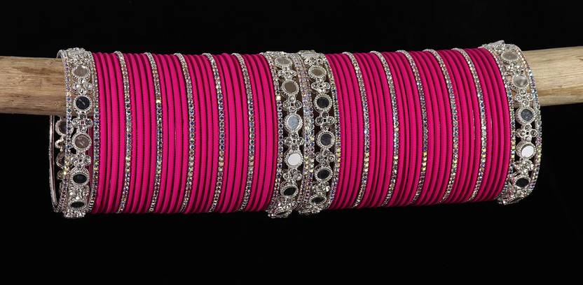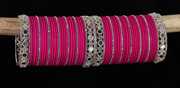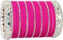 LAVAZZA Stylish Metal Mirror Work White Stone Bangles Set For Women & Girls | Diamond Bangles | Metal Bangles | Chudi Set | White Stone Bridal Chuda Set | Trendy AD Chooda Bangles-(FMS4-Magenta-2.2)