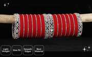 LAVAZZA's Stylish Metal Bangles Set For women and Girls is a stunning piece that combines modern style with timeless beauty, encapsulating the essence of a traditional or modern Indian wedding, function or any occassion. Crafted from high-quality Alloy Metal material, Mirror, AD Stone, and Zircon Gemstone. It is durable and vibrant red symbolizes love, passion, and new beginnings. The intricate design showcases LAVAZZA's skillful craftsmanship, ensuring you shine on your special day. The set also doubles as a versatile piece of bridal jewelry, complementing a wide range of outfits, including classic red sarees and modern lehengas. LAVAZZA prides itself on offering the finest quality, timeless style, and unwavering commitment to tradition. The set is designed to make your wedding day extra special, ensuring you look and feel your best. Elevate your bridal ensemble with LAVAZZA's Bangles Chuda Set and make memories that will last a lifetime. These LAVAZZA's Designer Bangles Set Have a Premium Finish and are Perfect for Weddings, Engagements, Functions, Festival, Rituals, and Events. The Brand LAVAZZA sells all types of Glass Bangles, Metal Bangles, Acrylic Bangles, Chuda Sets, Kaleera Latkan Sets, Kadas, Bracelets, Women's and Girls Traditional to Modern Jewellery, and many More. And Please Refer to our Size Chart to Know your Hand Size Precisely. Clean bangles with a smooth cotton cloth, avoid direct water, perfume, deodorant, sunlight, and chemicals, and store in an airtight zip-lock pouch to maintain longevity. Thank You For Choosing LAVAZZA's Premium Collection.