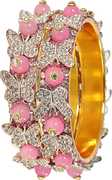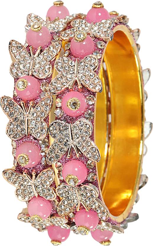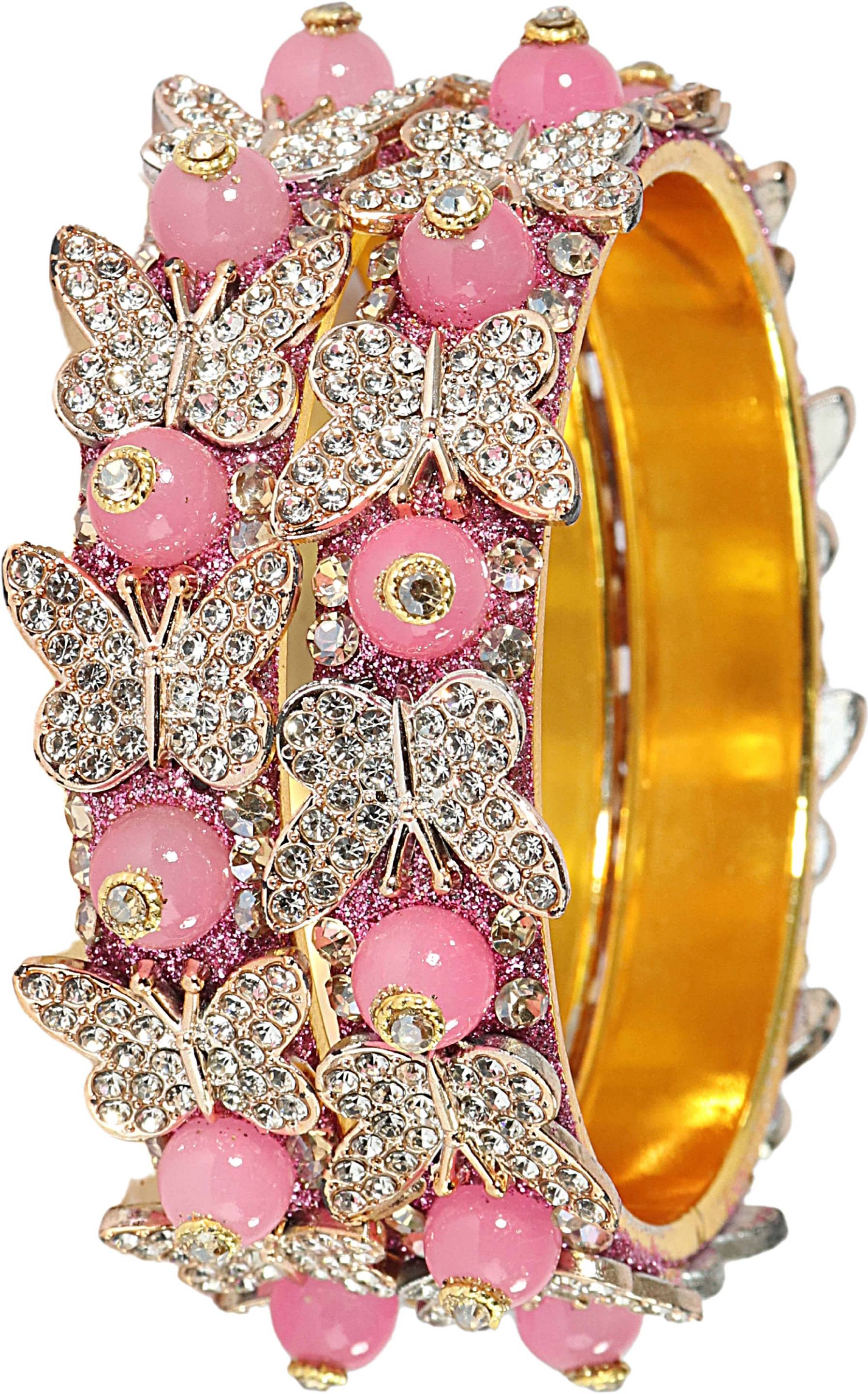 LAVAZZA Presents Latest Butterfly Design Gold Plated Alloy Metal with Zircon Diamond Stone & Pearls Moti Bangles Kada Set Set For Women & Girls. This Stylish Women's Bangles Set is a stunning piece that combines traditional Style with modern beauty, capture the essence of a Wedding, Party, Anniversary, Function, Festival or any Occasion. Its is Crafted from high-quality Alloy Metal, Zircon Diamond Stone & Pearls Moti. It is durable and vibrant colours symbolizes love, passion, and new beginnings. The intricate design showcases LAVAZZA's skillful craftsmanship, ensuring you shine on your special day. The set also doubles as a versatile piece of bridal jewelry, complementing a wide range of outfits, including classic red sarees and modern lehengas. LAVAZZA prides itself on offering the finest quality, timeless style, and unwavering commitment to tradition. The set is designed to make your Special day extra special, ensuring you look and feel your best. Elevate your bridal ensemble with LAVAZZA's Bangles Set and make memories that will last a lifetime. These LAVAZZA's Designer Bangles Set Have a Premium Finish and are Perfect for Weddings, Engagements, Functions, Festival, Rituals, and Events. The Brand Lavazza sells all types of Glass Bangles, Metal Bangles, Acrylic Bangles, Chuda Sets, Kaleera Latkan Sets, Kadas, Bracelets, Women's and Girls Traditional to Modern Jewellery, and many More. And Please Refer to our Size Chart to Know your Hand Size Precisely. Clean bangles with a smooth cotton cloth, avoid direct water, perfume, deodorant, sunlight, and chemicals, and store in an airtight zip-lock pouch to maintain longevity. Thank You For Choosing LAVAZZA's Trending Design Bangles Collection on .