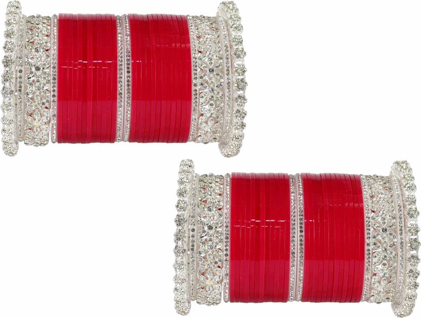LAVAZZA's Features Premium Quality Gold Plated Metal with Acrylic Plastic Bangles Chuda Set For women & Girls. This Chura Set is a stunning piece that combines modern style with traditional beauty, capture the essence of a Wedding, Party, Anniversary, Function, Festival or any Occasion. Its is Crafted from high-quality Alloy Metal material, AD Stone, Zircon Gemstone & Acrylic Bangles Material. It is durable and vibrant colours symbolizes love, passion, and new beginnings. The intricate design showcases Lavazza's skillful craftsmanship, ensuring you shine on your special day. The set also doubles as a versatile piece of bridal jewelry, complementing a wide range of outfits, including classic red sarees and modern lehengas. LAVAZZA prides itself on offering the finest quality, timeless style, and unwavering commitment to tradition. The set is designed to make your Special day extra special, ensuring you look and feel your best. Elevate your bridal ensemble with LAVAZZA's Bangles Chuda Set and make memories that will last a lifetime. These LAVAZZA's Designer Bridal Chuda Set Have a Premium Finish and are Perfect for Weddings, Engagements, Functions, Festival, Rituals, and Events. The Brand Lavazza sells all types of Glass Bangles, Metal Bangles, Acrylic Bangles, Chuda Sets, Kaleera Latkan Sets, Kadas, Bracelets, Women's and Girls Traditional to Modern Jewellery, and many More. And Please Refer to our Size Chart to Know your Hand Size Precisely. Clean bangles with a smooth cotton cloth, avoid direct water, perfume, deodorant, sunlight, and chemicals, and store in an airtight zip-lock pouch to maintain longevity. Thank You For Choosing Lavazza's Premium Bangles Collection.