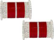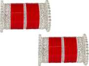 LAVAZZA's Latest Premium Quality Silver Plated Alloy Metal with Acrylic Plastic Bangles Bridal Chuda Set For women & Girls. This Chura Set is a stunning piece that combines modern style with traditional beauty, capture the essence of a Wedding, Party, Anniversary, Function, Festival or any Occasion. Its is Crafted from high-quality Alloy Metal material, AD Stone, Zircon Gemstone & Acrylic Bangles Material. It is durable and vibrant colours symbolizes love, passion, and new beginnings. The intricate design showcases Lavazza's skillful craftsmanship, ensuring you shine on your special day. The set also doubles as a versatile piece of bridal jewelry, complementing a wide range of outfits, including classic red sarees and modern lehengas. LAVAZZA prides itself on offering the finest quality, timeless style, and unwavering commitment to tradition. The set is designed to make your Special day extra special, ensuring you look and feel your best. Elevate your bridal ensemble with LAVAZZA's Bangles Chuda Set and make memories that will last a lifetime. These LAVAZZA's Designer Bridal Chuda Set Have a Premium Finish and are Perfect for Weddings, Engagements, Functions, Festival, Rituals, and Events. The Brand Lavazza sells all types of Glass Bangles, Metal Bangles, Acrylic Bangles, Chuda Sets, Kaleera Latkan Sets, Kadas, Bracelets, Women's and Girls Traditional to Modern Jewellery, and many More. And Please Refer to our Size Chart to Know your Hand Size Precisely. Clean bangles with a smooth cotton cloth, avoid direct water, perfume, deodorant, sunlight, and chemicals, and store in an airtight zip-lock pouch to maintain longevity. Thank You For Choosing LAVAZZA's Premium Chuda Collection.