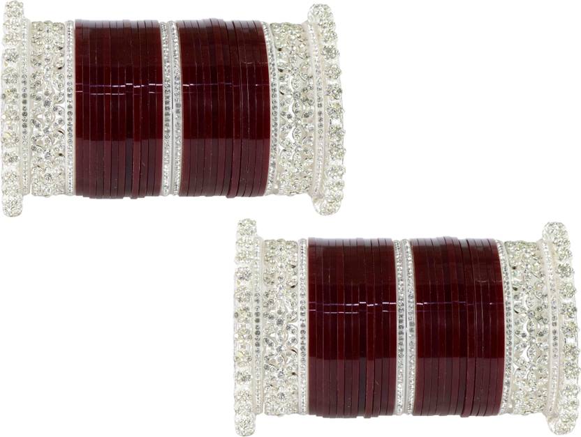 LAVAZZA's Latest Premium Quality Silver Plated Alloy Metal with Acrylic Plastic Bangles Bridal Chuda Set For women & Girls. This Chura Set is a stunning piece that combines modern style with traditional beauty, capture the essence of a Wedding, Party, Anniversary, Function, Festival or any Occasion. Its is Crafted from high-quality Alloy Metal material, AD Stone, Zircon Gemstone & Acrylic Bangles Material. It is durable and vibrant colours symbolizes love, passion, and new beginnings. The intricate design showcases Lavazza's skillful craftsmanship, ensuring you shine on your special day. The set also doubles as a versatile piece of bridal jewelry, complementing a wide range of outfits, including classic red sarees and modern lehengas. LAVAZZA prides itself on offering the finest quality, timeless style, and unwavering commitment to tradition. The set is designed to make your Special day extra special, ensuring you look and feel your best. Elevate your bridal ensemble with LAVAZZA's Bangles Chuda Set and make memories that will last a lifetime. These LAVAZZA's Designer Bridal Chuda Set Have a Premium Finish and are Perfect for Weddings, Engagements, Functions, Festival, Rituals, and Events. The Brand Lavazza sells all types of Glass Bangles, Metal Bangles, Acrylic Bangles, Chuda Sets, Kaleera Latkan Sets, Kadas, Bracelets, Women's and Girls Traditional to Modern Jewellery, and many More. And Please Refer to our Size Chart to Know your Hand Size Precisely. Clean bangles with a smooth cotton cloth, avoid direct water, perfume, deodorant, sunlight, and chemicals, and store in an airtight zip-lock pouch to maintain longevity. Thank You For Choosing LAVAZZA's Premium Chuda Collection.