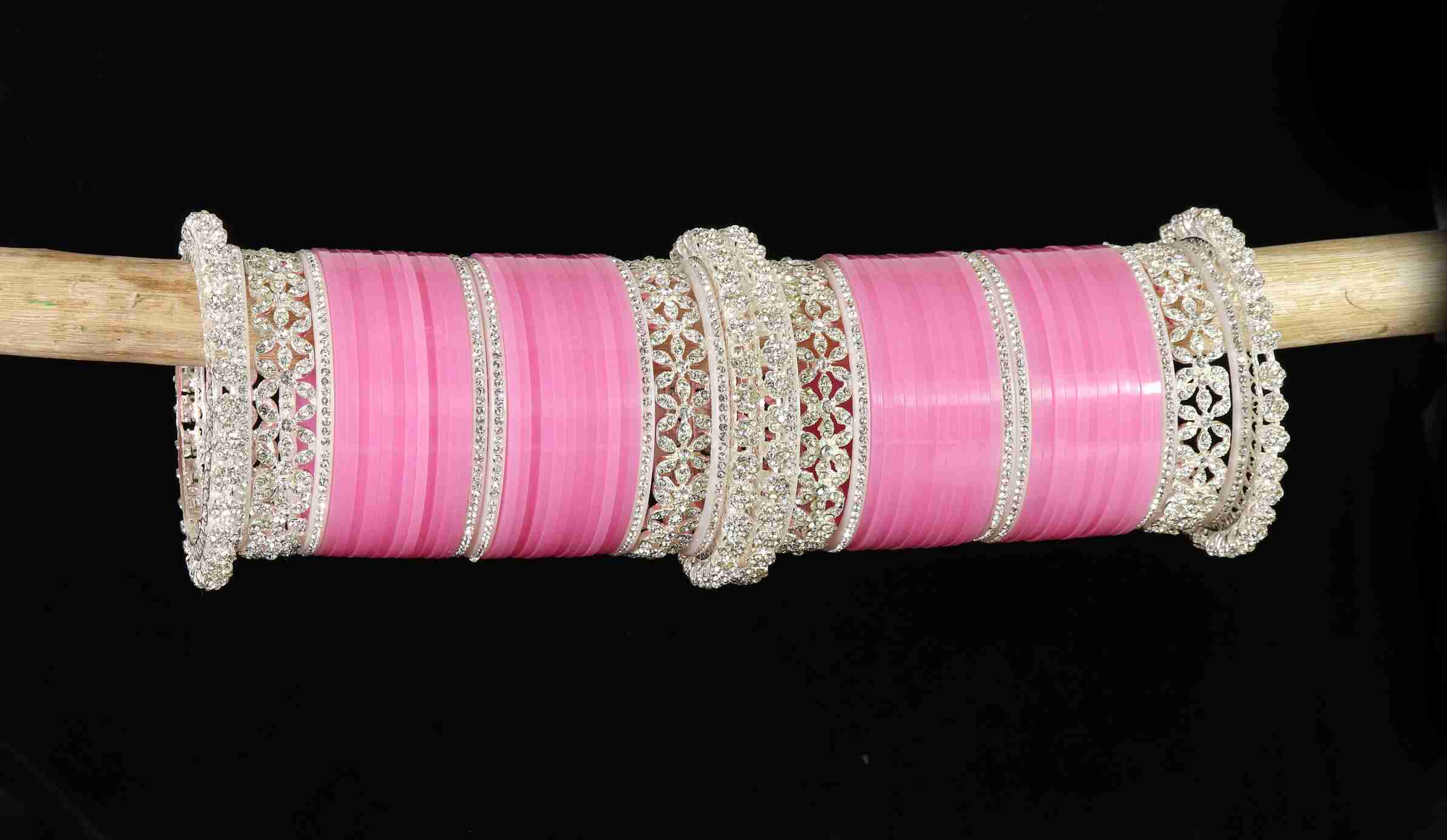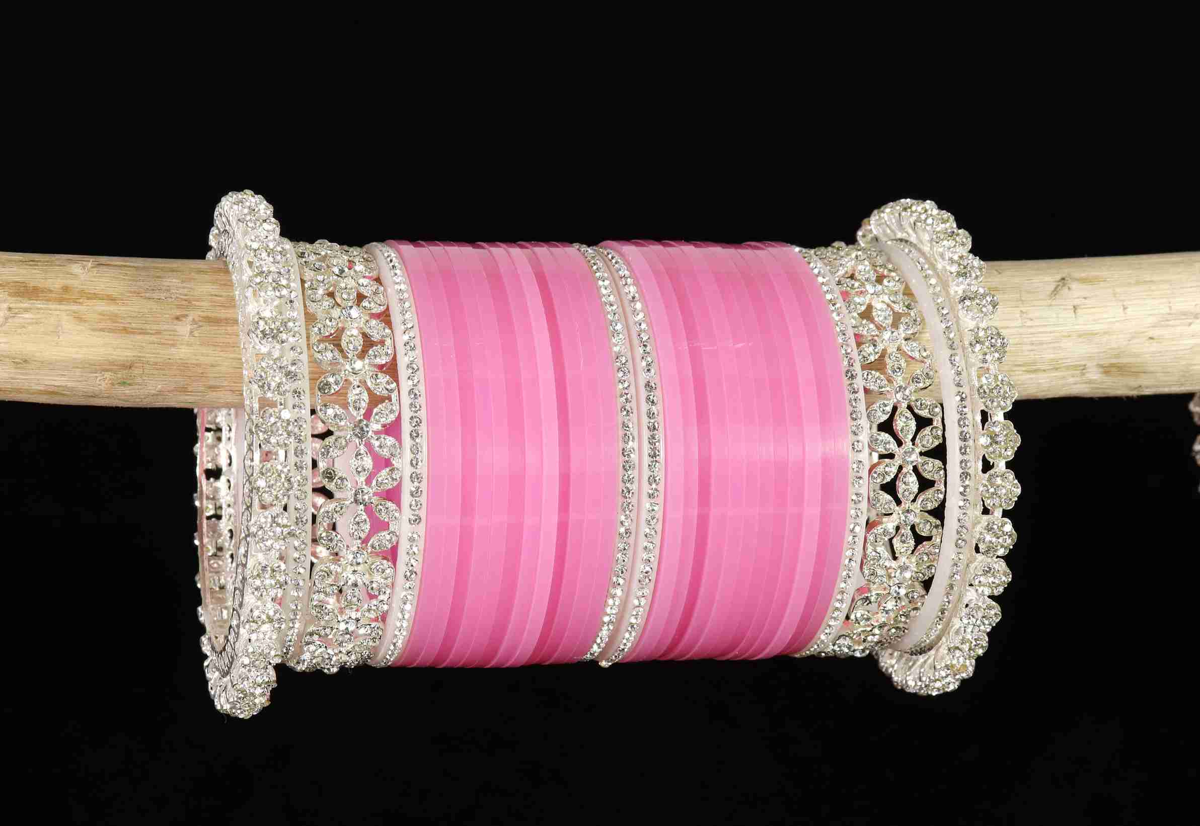 LAVAZZA's Latest Premium Quality Silver Plated Alloy Metal with Acrylic Plastic Bangles Bridal Chuda Set For women & Girls. This Chura Set is a stunning piece that combines modern style with tradition...more