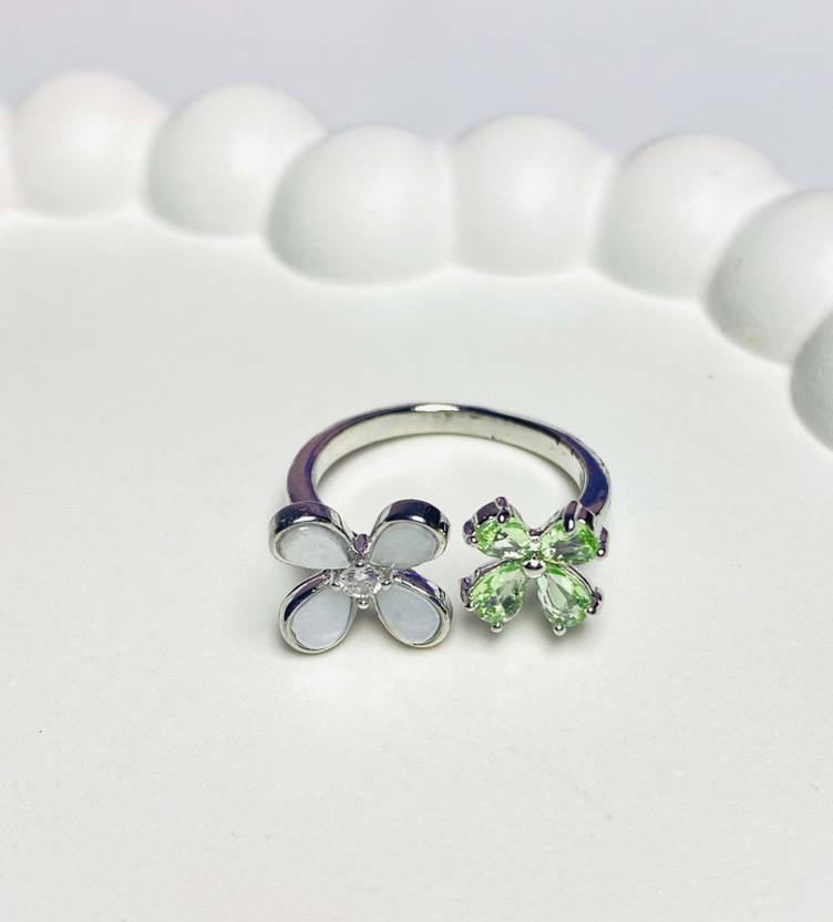 Elegant green dual flower adjustable ring inspired by Korean jewellery style. Lightweight, durable, and trendy, this ring is perfect for women and girls. Ideal for daily wear, parties, weddings, or gifting, it adds a fresh, stylish, and charming touch to any outfit.