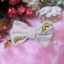 Laveni Creations Handmade Embroidered Rainbow Medium Bow Hair Clip – Barrette Clip Back Pin (Multicolor)