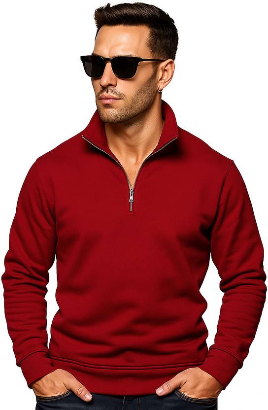 Lavenir Men Half Zipper Solid Sweatshirt