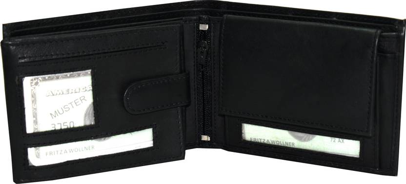 Men Casual Black Genuine Leather Wallet - Regular Size (13 Card Slots)