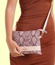 Carry your essentials with classic sophistication in this small python print sling bag. Featuring a zip coin pocket, it provide shoulder bag lends an element of painless glamour looks. Featuring a polished metallic closure on front panel for luxe appeal, this feels so slouchy and soft accessory.This large sized to fit your daily essentials.I t comes with interior 2 pockets.You can carry it like adjustable strap like a crossbody.