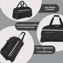This unisex stylish Wheel Duffle bag is made of premium polyester fabric which is the most durable material. It has a full lining for added strength and protection for your valuables
