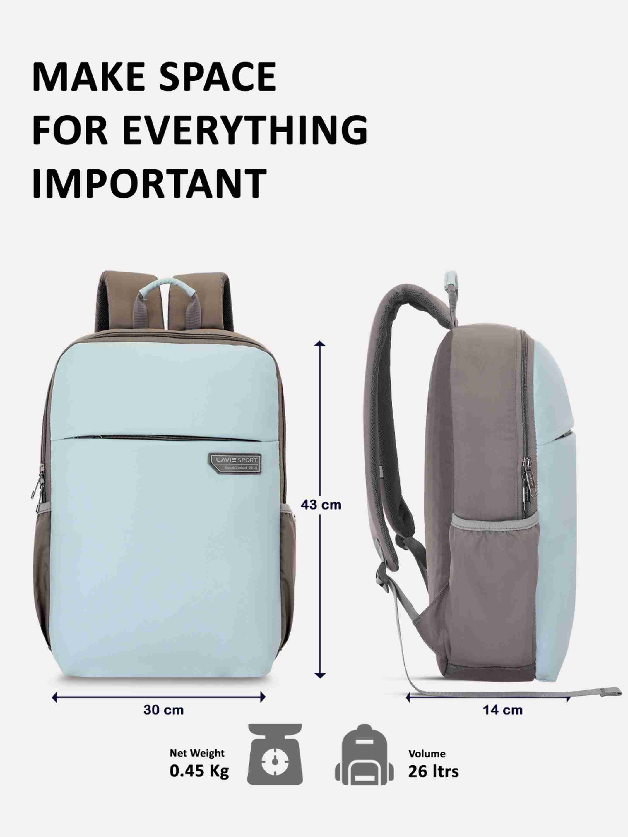 Lavie sport laptop backpack is made from durable premium polyester material for professional work. All features like spacious compartments, mesh shoulder strap, padded laptop sleeve, and multiple exte...more