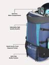For trekking and camping, the Lavie Sport rucksack is built of sturdy superior polyester material. It is a durable yet lightweight rucksack with one roomy compartment, mesh padded back, ergonomic shoulder straps, compression straps, and multiple pockets