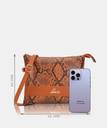 Carry your essentials with classic sophistication in this small python print sling bag. Featuring a zip coin pocket, it provide shoulder bag lends an element of painless glamour looks. Featuring a polished metallic closure on front panel for luxe appeal, this feels so slouchy and soft accessory.This large sized to fit your daily essentials.I t comes with interior 2 pockets.You can carry it like adjustable strap like a crossbody.