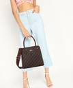 Set trends by adding a touch of Monogram print on this handbag, crafted by Lavie. Match it with a pencil skirt or shirt with high heels of your choice to get a professional look at office. You may also style it with a traditional attire to complete your look.