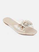Introducing the "Lavie Women's Heels Sandal" a stylish and versatile addition to your footwear collection. Style: Designed with a flat sole for maximum comfort, these sandals offer a seamless fit for all-day wear. Color: Available in a stunning Gold shade, these sandals are ideal for evening events or adding a touch of glam to ethnic outfits. Upper Material: The upper is crafted from high-quality Synthetic, giving the sandals a dazzling finish, complemented by TPR Sole for a trendy and secure fit. These sandals effortlessly combine elegance and comfort, making them perfect for any occasion.